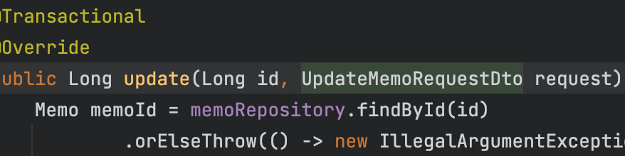 그리고 MemoServiceImpl의 update로직에서 CreateMemoRequestDto -> UpdateMemoRequestDto로 변경하고
