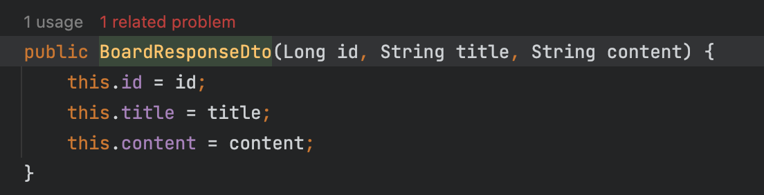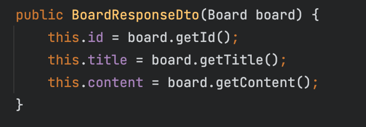 그래서 BoardResponseDto 메서드의 파라미터로 Board형태로 받아야 한다.